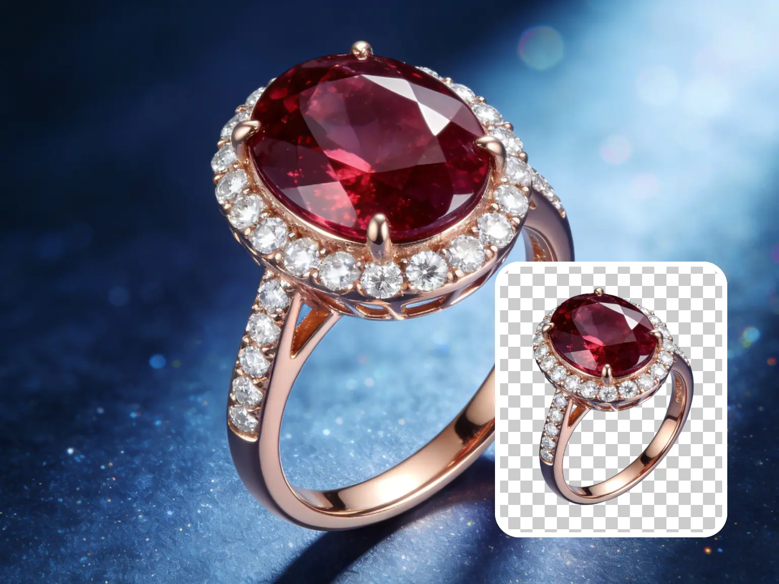捕捉珠宝通透质感与背景,精准剥离还原原生光泽,适配珠宝品牌宣传、产品详情的高清展示场景。