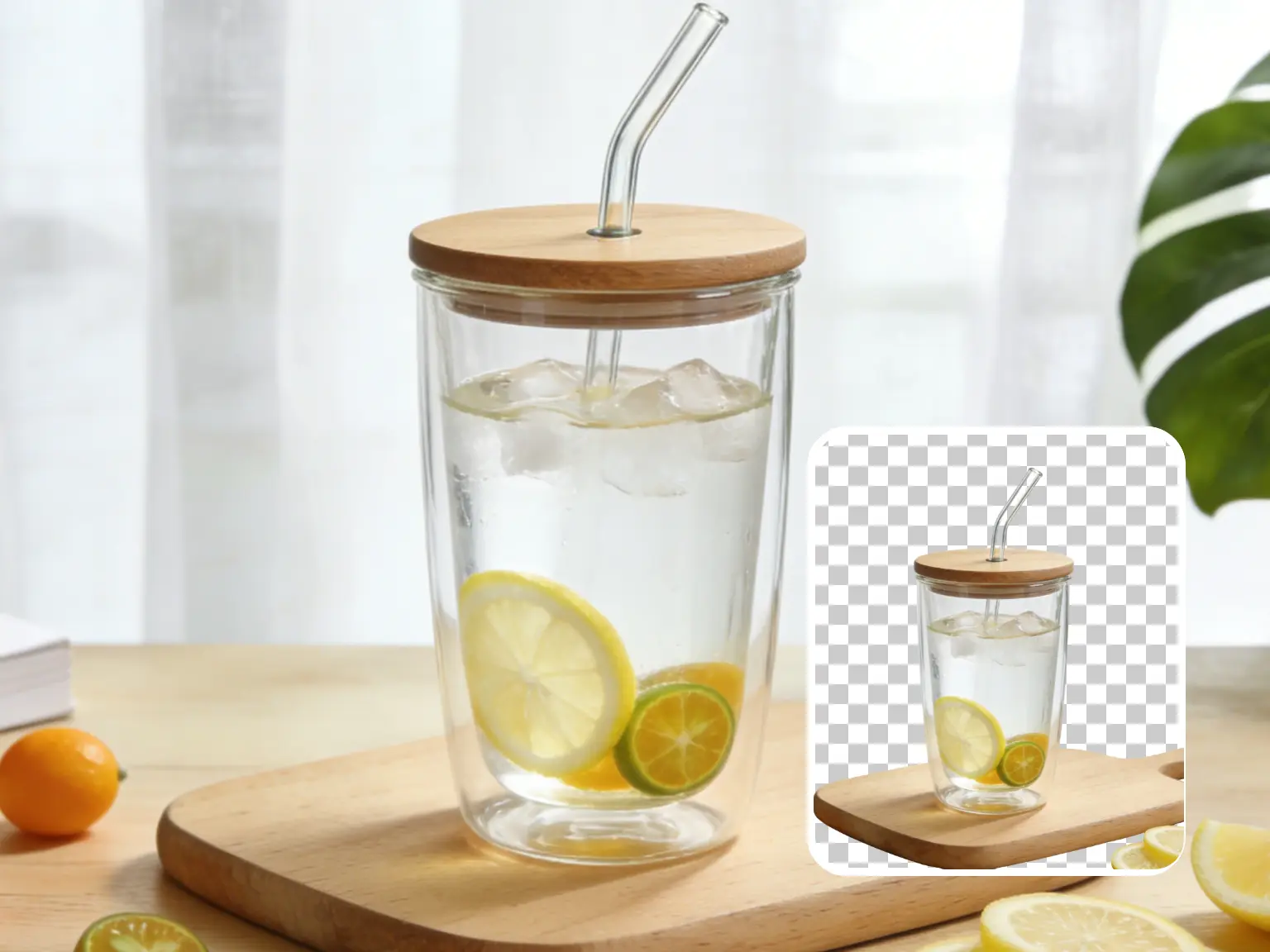 玻璃制品周边背景精准识别,剥离后还原通透本色,满足家居、餐具类产品的高清宣传物料制作。