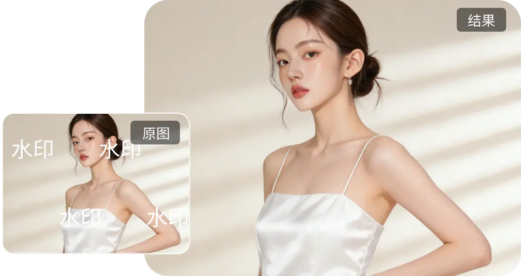 AI 自动识别水印区域(含文字、图案等各类水印),精准定位后完成无痕去除,无论复杂背景还是叠加水印,都能一键清理干净~
