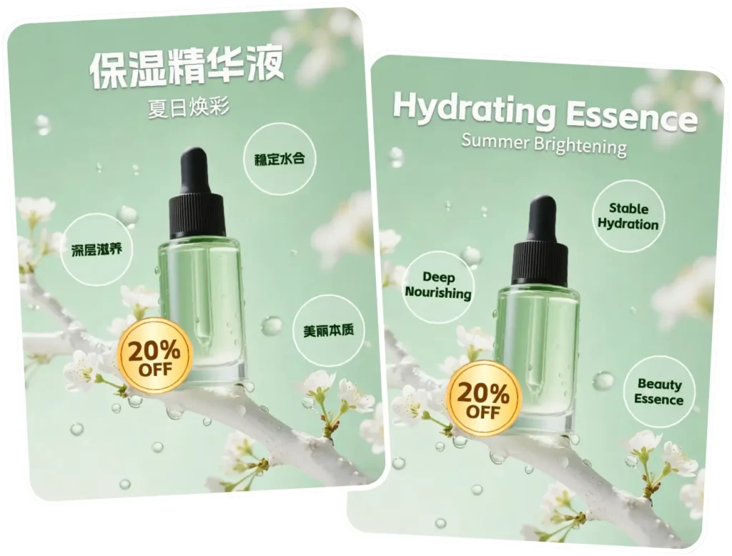 我们的人工智能技术能够确保翻译后的文字与图像完美融合,不仅保留了原有的视觉吸引力,更增添了跨语言的流畅表达。